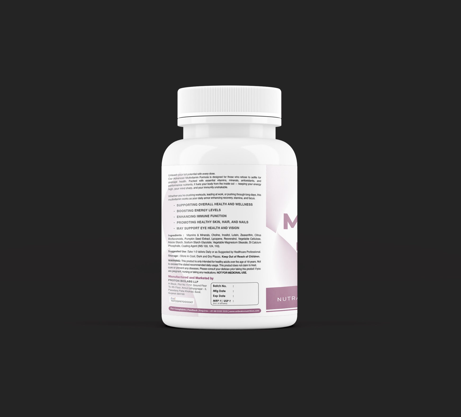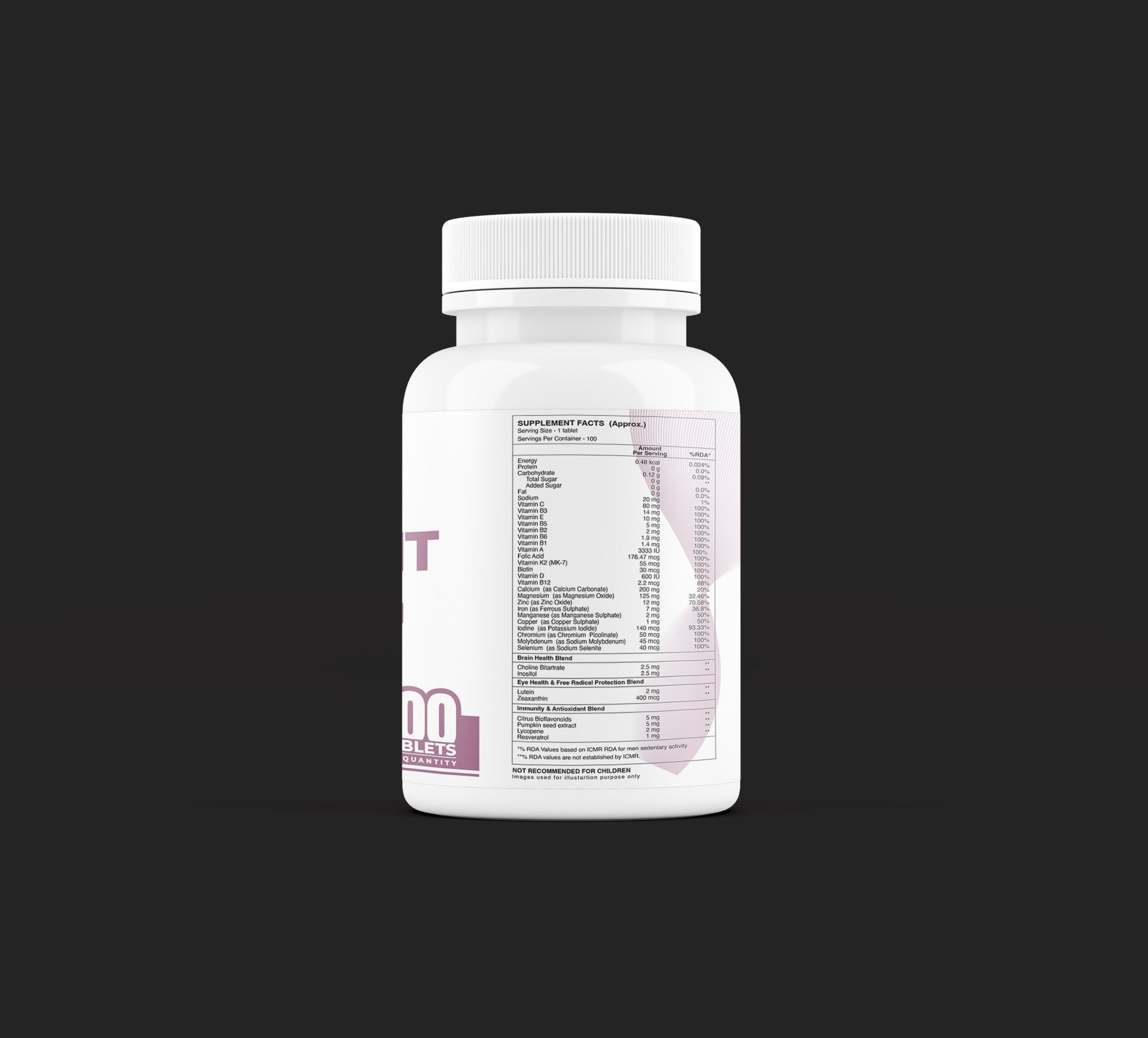 Unleash your true potential with Unbeaten Nutrition's Multi Vitamin - a complete daily essential formula packed with vitamins, minerals, and antioxidants designed to support overall health and performance. Our advanced formula is crafted to help those who lift heavy, train hard, or are pushing through long days. This comprehensive multivitamin comes in an easy-to-use tablet form for 100 servings.
